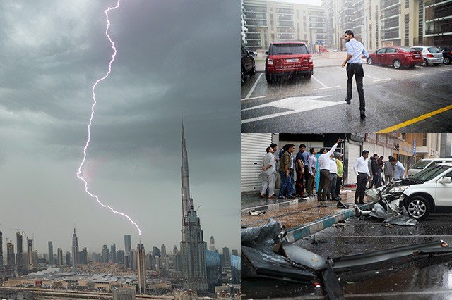ضربت عاصفة عاتية وأمطار رعدية مناطق مختلفة في دولة الإمارات العربية المتحدة، ما أدى إلى إغلاق المطارات الرئيسية وتوقف الدراسة بالجامعات والمدارس، وتعليق التعامل في بورصة أبوظبي للأوراق المالية.